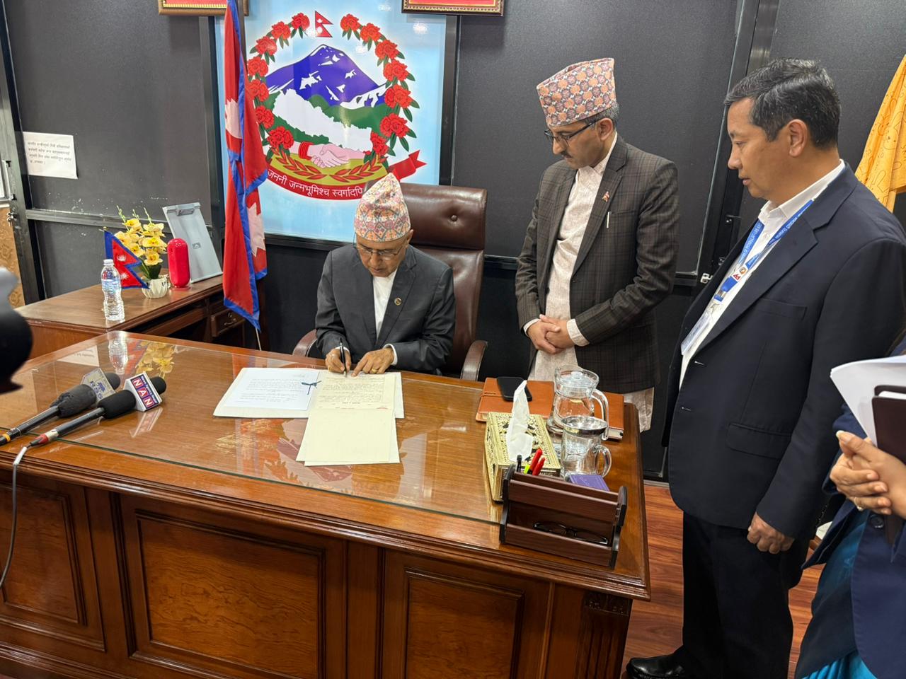 माननिय मन्त्री रामेश्वरप्रसाद खनाल ज्यू पदवहाली गर्नुहुदै ।